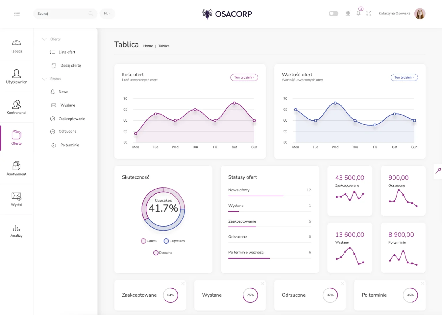 System jest skierowany do firm z branż takich jak sprzedaż hurtowa, detaliczna, IT, telekomunikacja i usługi. Ofertowanie365 pozwala błyskawicznie dostosowywać oferty do potrzeb klientów, śledzić ich aktywność i generować szczegółowe raporty — wszystko w jednym miejscu.